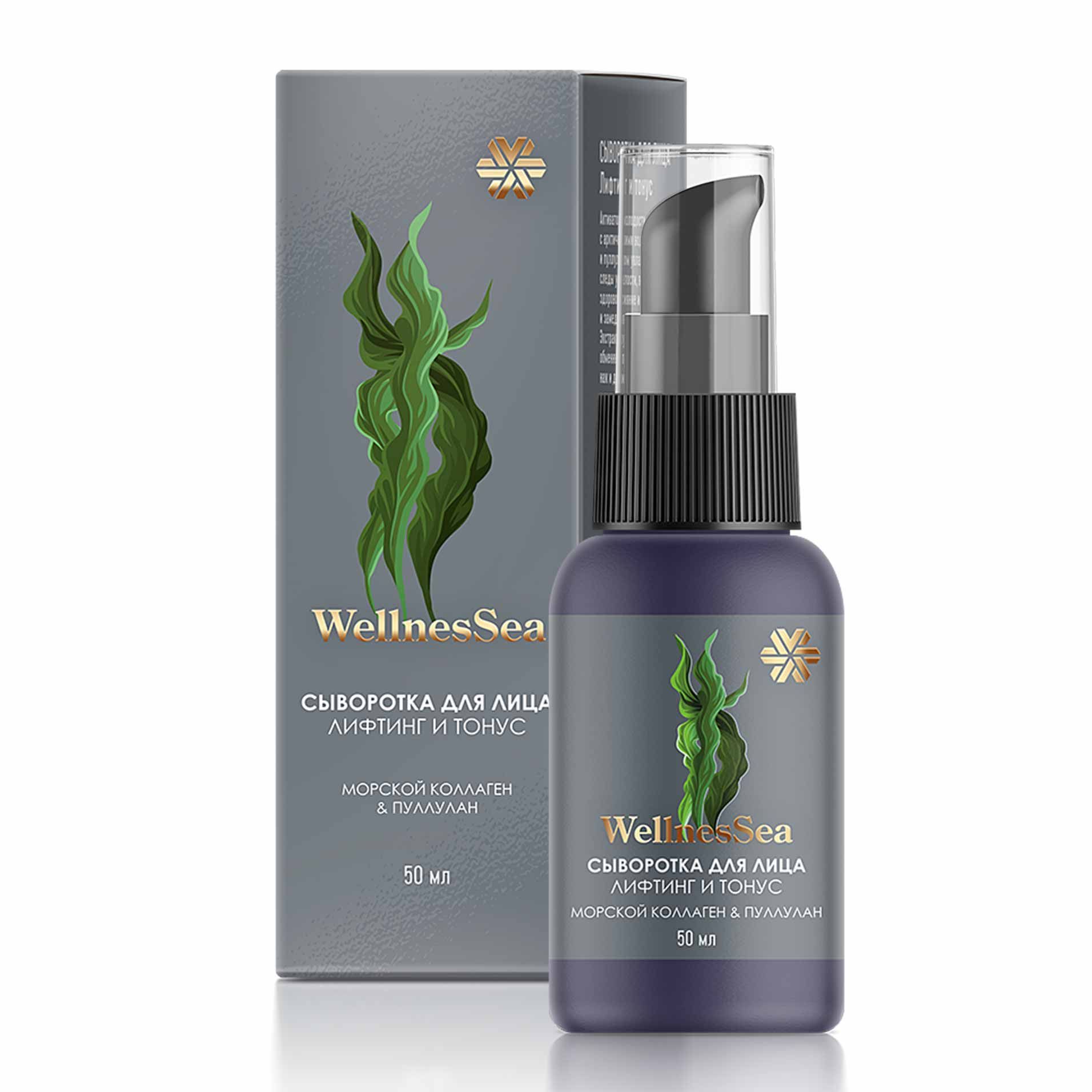 Белсенді компоненттер: пуллулан, биоферменттелген теңіз орамжапырағы, қызғылт ақсерке уылдырығының сығындысы, теңіз орамжапырағының минералды концентраты, фукус сығындысы, теңіз коллагені, эластин, ниацинамид, бетаин.