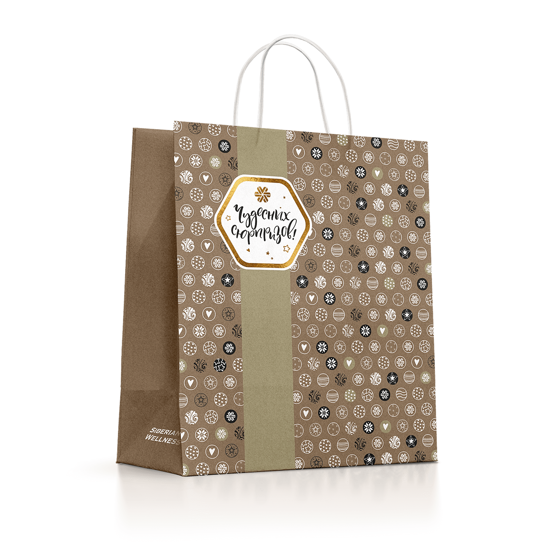Стильный крафтовый пакет в новогоднем дизайне отлично дополнит любой подарок и создаст праздничное настроение. Порадуйте близких поздравлением от Компании Siberian Wellness!