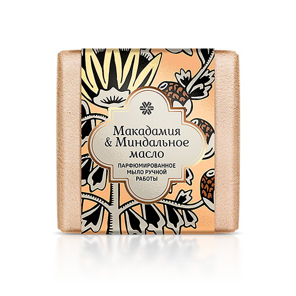 Мыльная основа, парфюм, масло сладкого миндаля, токоферола ацетат, пантенол, масло макадамии, масло лесного ореха, экстракт ванили, краситель пищевой.