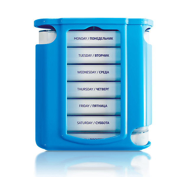 Аксессуар отлично подойдет тем, кто часто оказывается в дороге и просто вне дома. С помощью этой универсальной таблетницы вы сможете комфортно и вовремя принимать биоактивные добавки, витамины или медикаменты – в любое время и в любом месте.