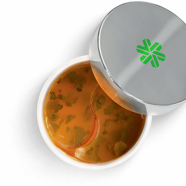 Открой стильную упаковку и сними защитную мембрану. Внутри тебя ждут 60 гидрогелевых патчей приятного травяного оттенка с вкраплениями листьев зеленого чая. Для большей чистоты и удобства мы дополнили продукт ложечкой для извлечения патчей.