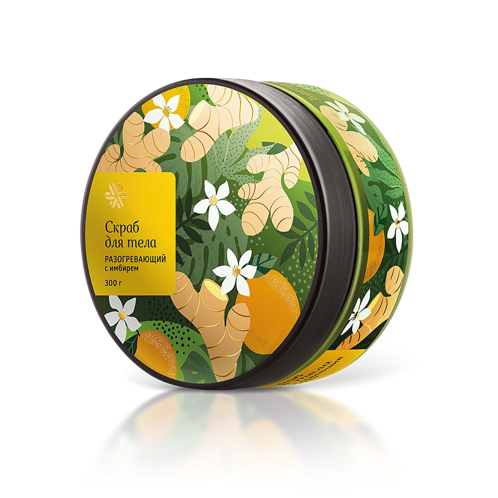 Скраб с морской солью, маслами миндаля, кокоса и эфирными маслами улучшает клеточное дыхание и очищает кожу от омертвевших клеток, придавая ей гладкость, бережно согревает и расслабляет мышцы. Ароматы имбиря и апельсина наполняют бодростью и дарят хорошее настроение.